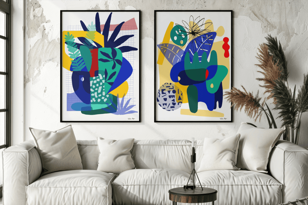 The "Herbalia" print by Teresa Rego is a botanical celebration, featuring an intricate arrangement of herbs in vibrant hues.