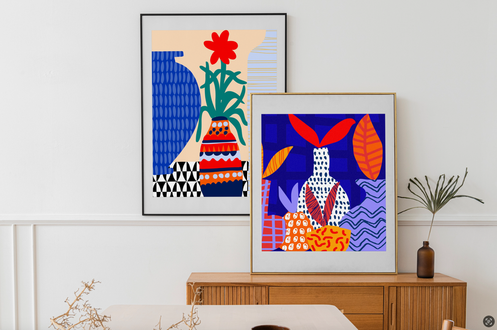 You can choose to purchase the print with or without a frame. Frames are made of wood and are available in white, black, or oak finishes, featuring an acrylic top and no mount in between.