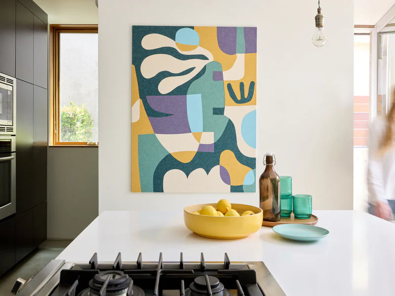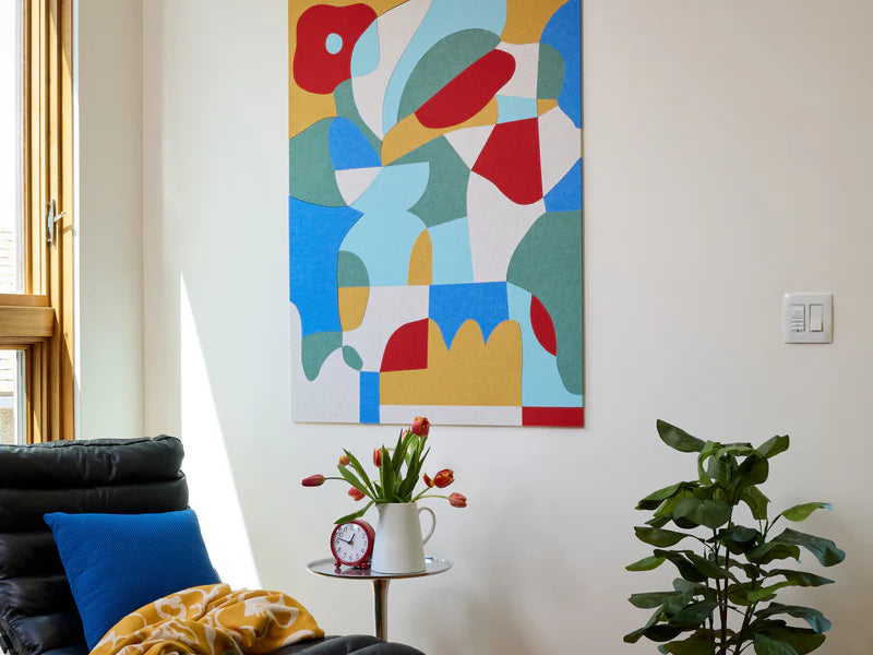 These visually stunning pieces share all the benefits of felt right designs. They are sound-dampening, easy to install, and sustainably made from recycled plastic bottles