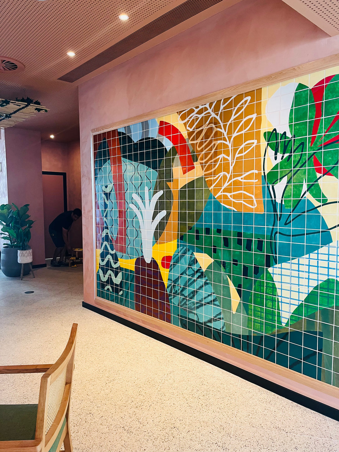In total there are 48 rooms with custom made illustrations, 17 illustrations for the hallway and 1 handmade tile panel handpainted in a workshop in Portugal.
